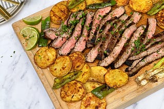 Caribbean Cilantro-Lime Flank Steak With Charred Vegetables